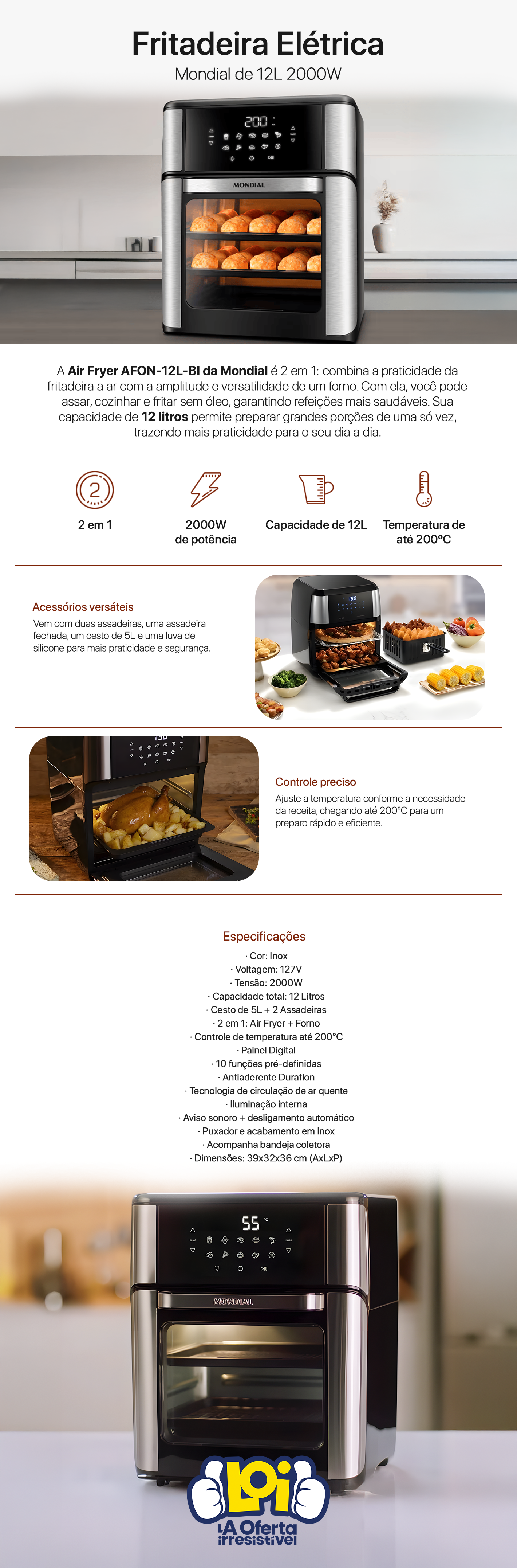 2 em 1: Air Fryer + Forno