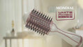 Cerdas: Mistas e flexíveis, que deslizam suavemente e não agridem os fios, promovendo o alinhamento.